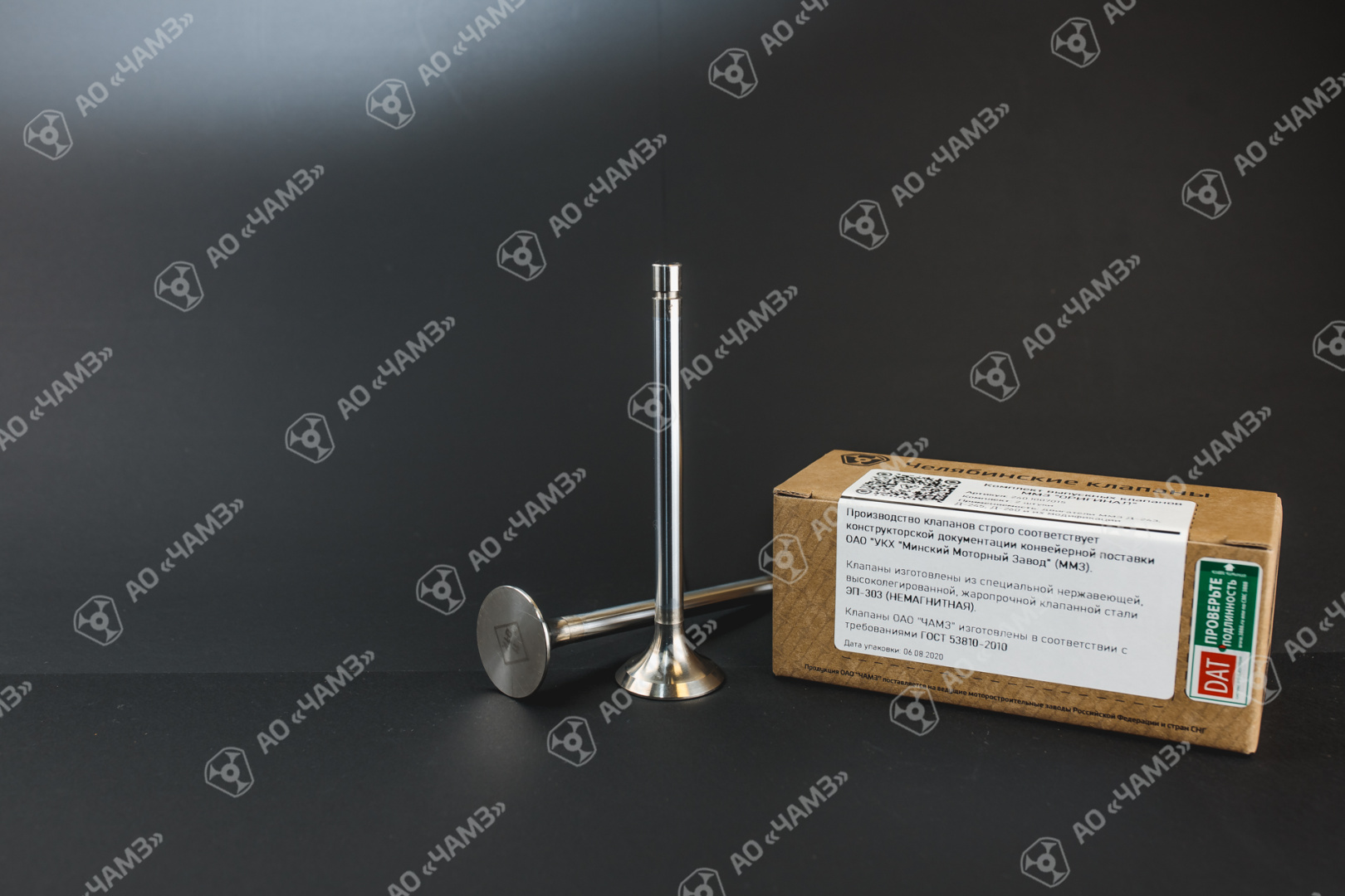 Твердый хром упрочняет поверхность клапана, дополнительно частички хрома переносятся на внутреннюю часть направляющей втулки клапана, что позволяет увеличить антизадирные свойства и уменьшить силу трения, значительно уменьшает адгезию нагара отработавших газов в паре стержень клапана — направляющая втулка и имеет отличные антикоррозионные свойства. Технология покрытия стержня клапана твердым хромом значительно превосходит дешевые методы карбонитрации и азотирования адаптированные к производству клапанов различными китайскими производителями — на этом важном этапе производства АО «ЧАМЗ» не экономит, выпуская с производства высококачественные клапана соответствующие всем требованиям ГОСТ Р 5380-2010.